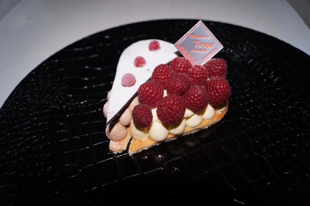 Bizantin (Mousse chocolat blanc, Coulis fruits rouges, Craquant praliné)