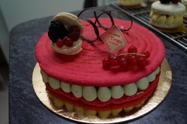 Bizantin (Mousse chocolat blanc, Coulis fruits rouges, Craquant praliné)